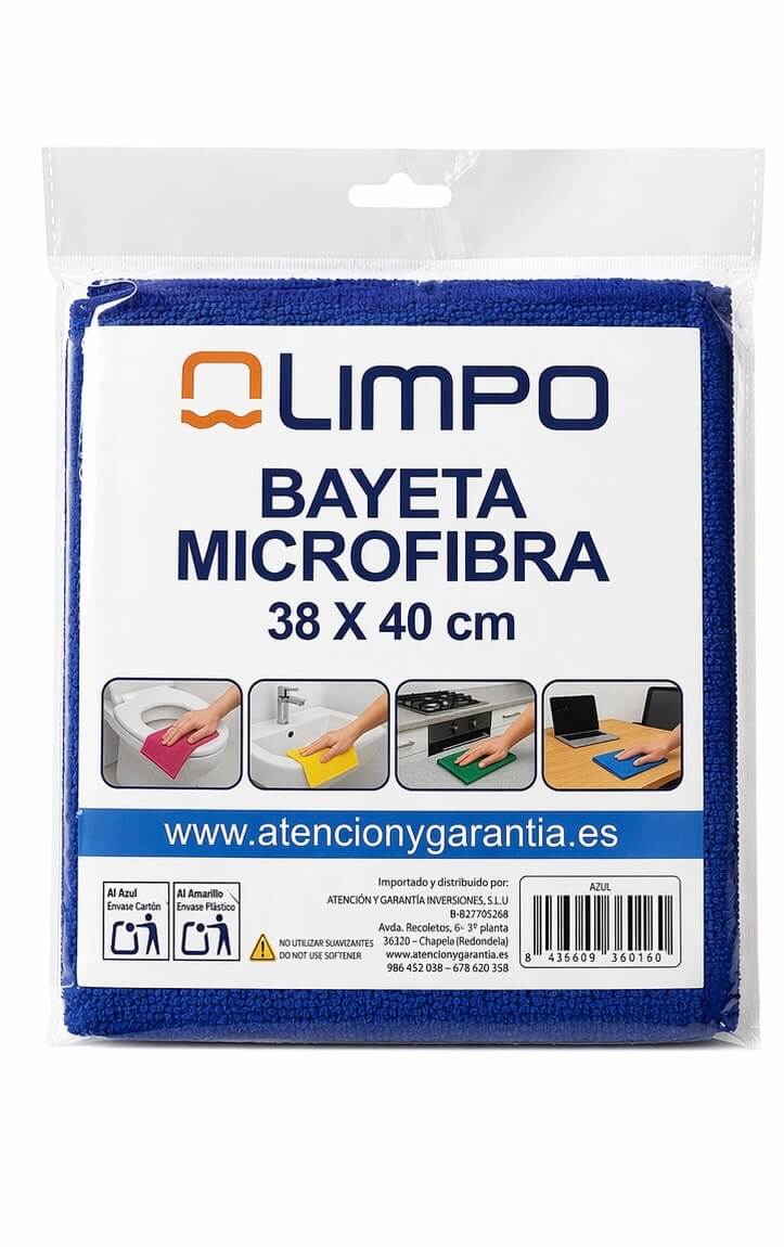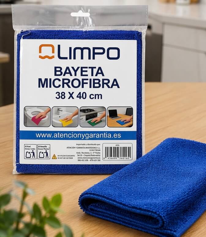 La bayeta de microfibra Olimpo azul de 38 x 40 cm es ideal para una limpieza eficaz, rápida y sin esfuerzo en todo tipo de superficies. Fabricada con microfibra de alta calidad, elimina polvo, grasa y suciedad sin necesidad de productos químicos, dejando un acabado impecable sin rayas ni pelusas.