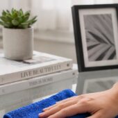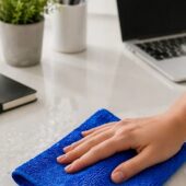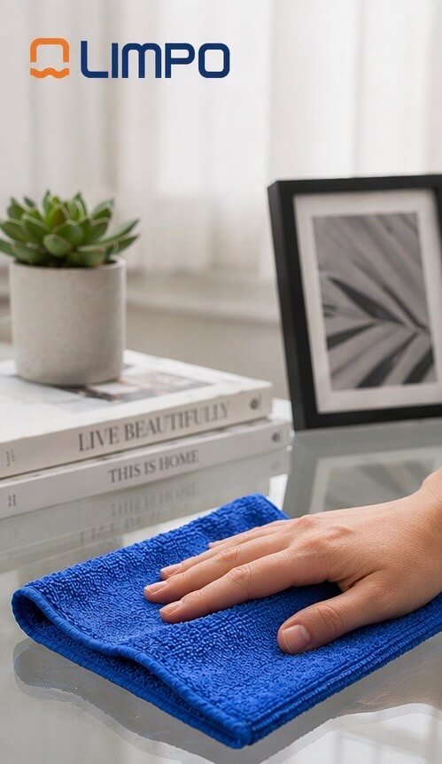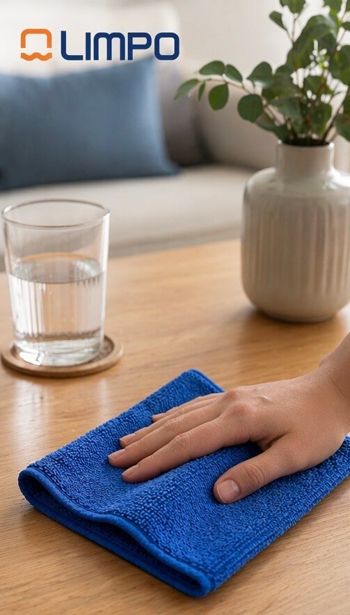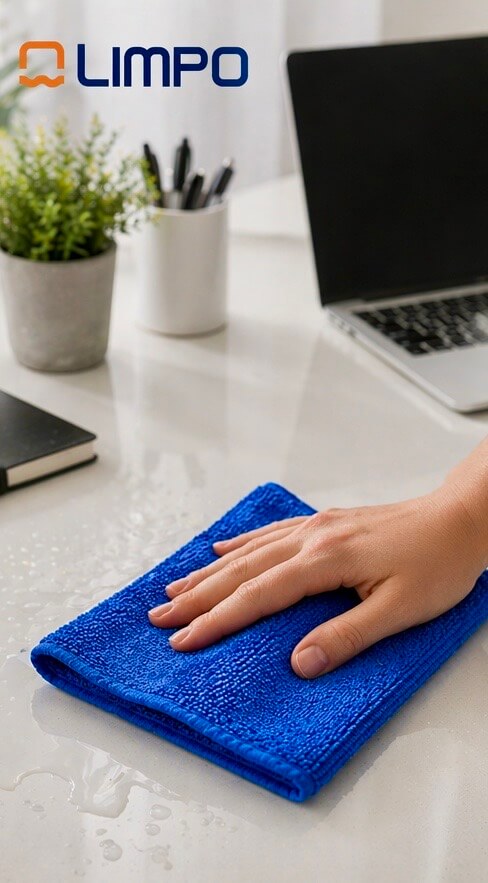 El color azul se utiliza habitualmente para la limpieza de superficies generales, como muebles, cristales, mesas o zonas de uso cotidiano, permitiendo organizar las tareas de limpieza y evitar contaminaciones cruzadas.