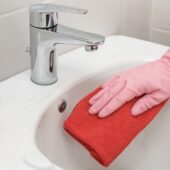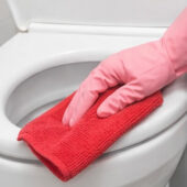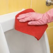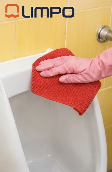 Bayeta de microfibra roja especialmente indicada para la limpieza de baños y zonas sanitarias de alto riesgo, como inodoros, urinarios y superficies con alta carga bacteriana.