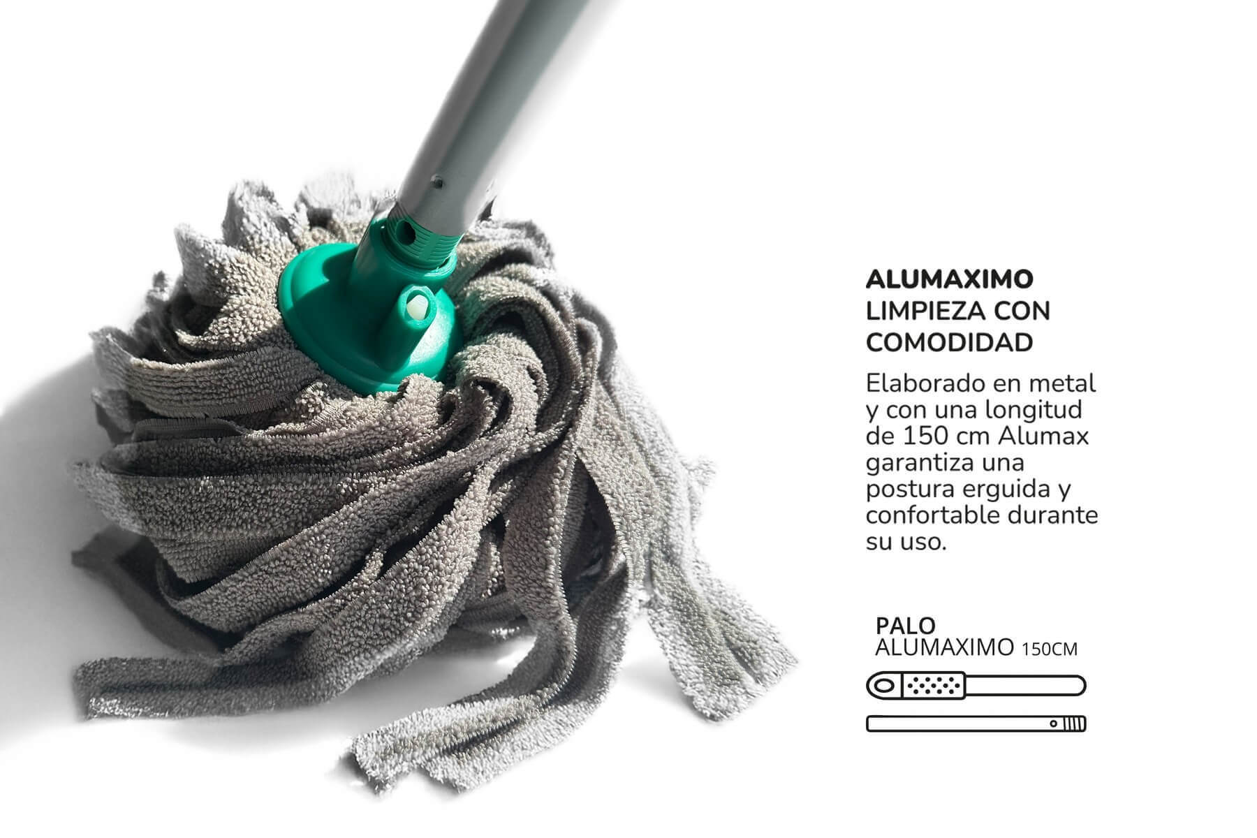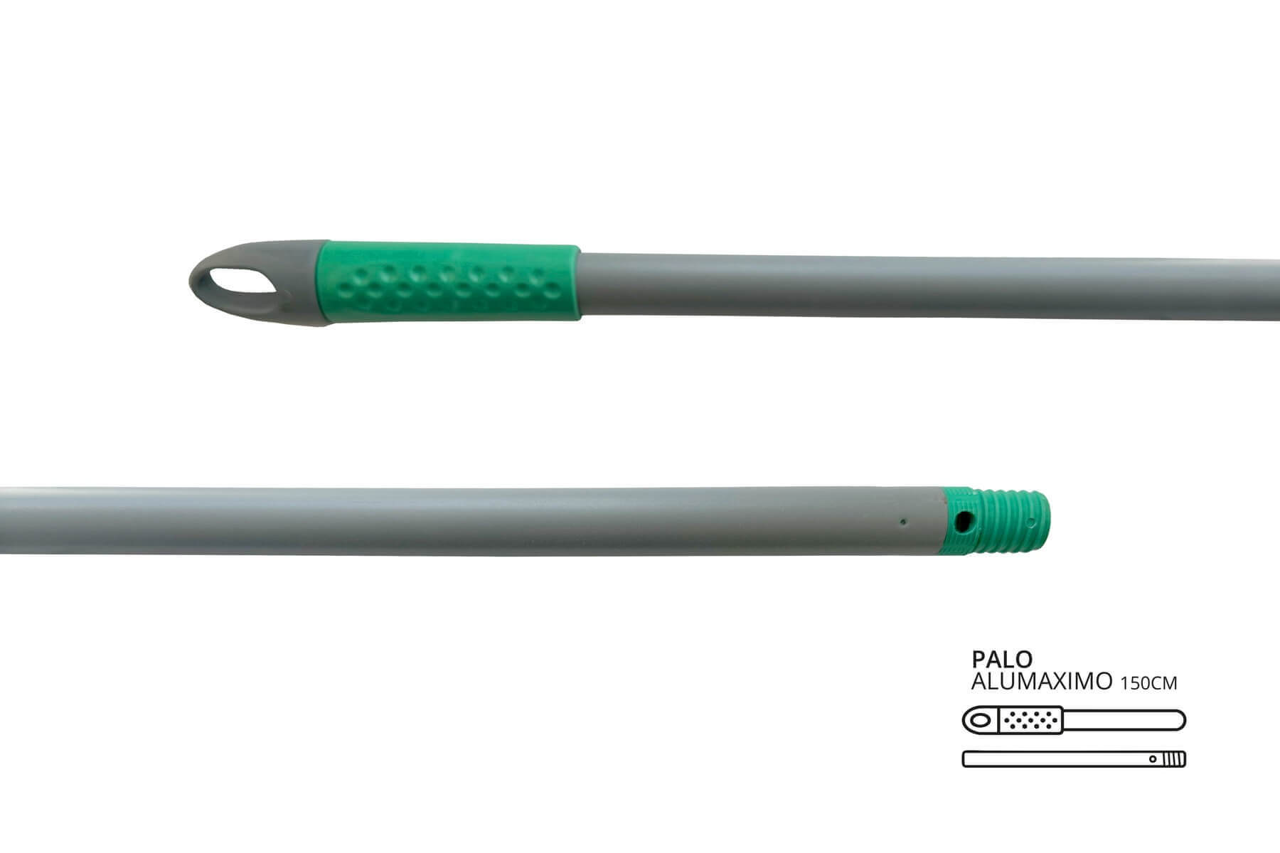 El Palo Alumaximo de 150 cm en color verde está diseñado para quienes necesitan mayor alcance, resistencia y comodidad en trabajos de limpieza intensivos.