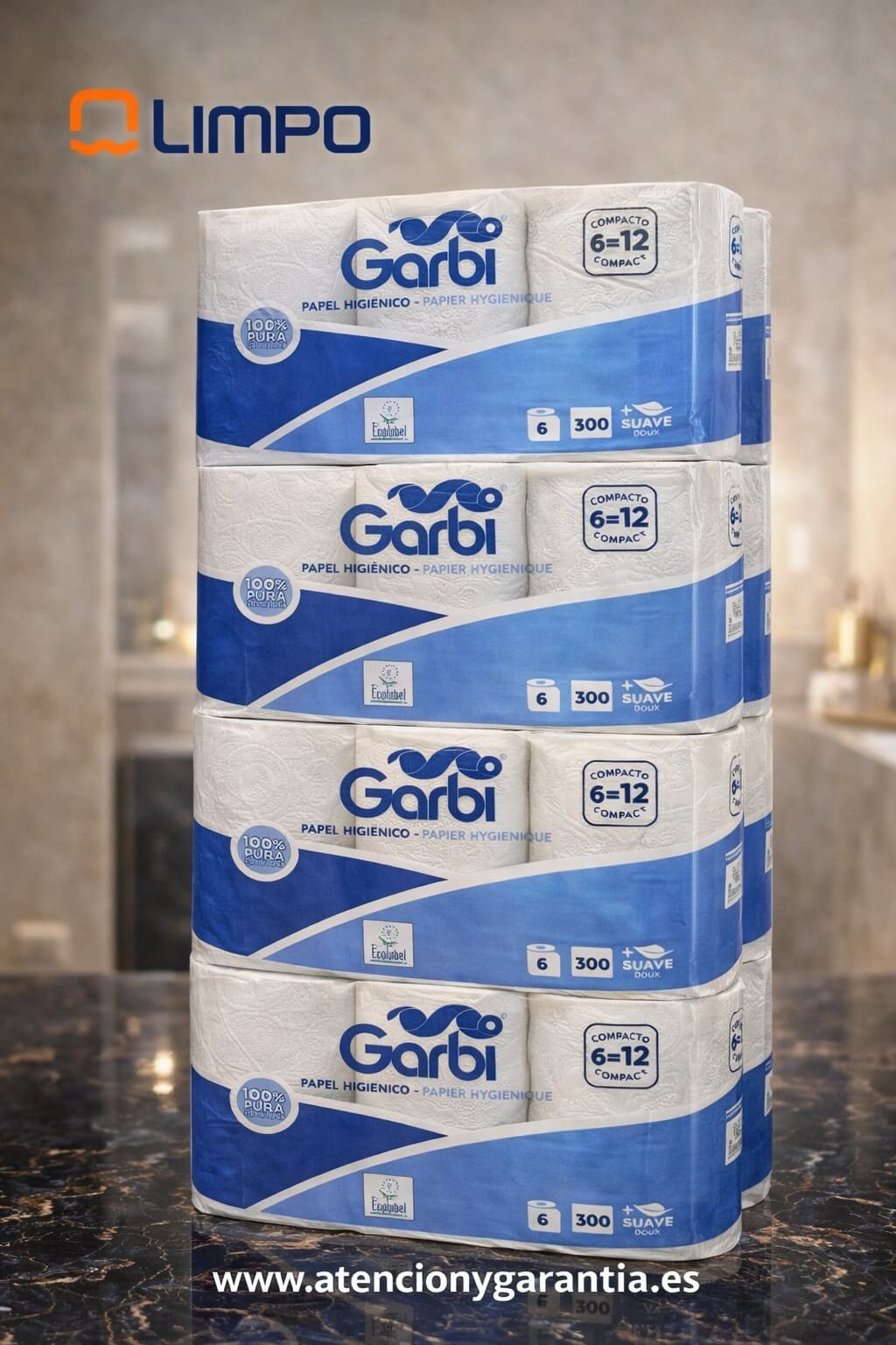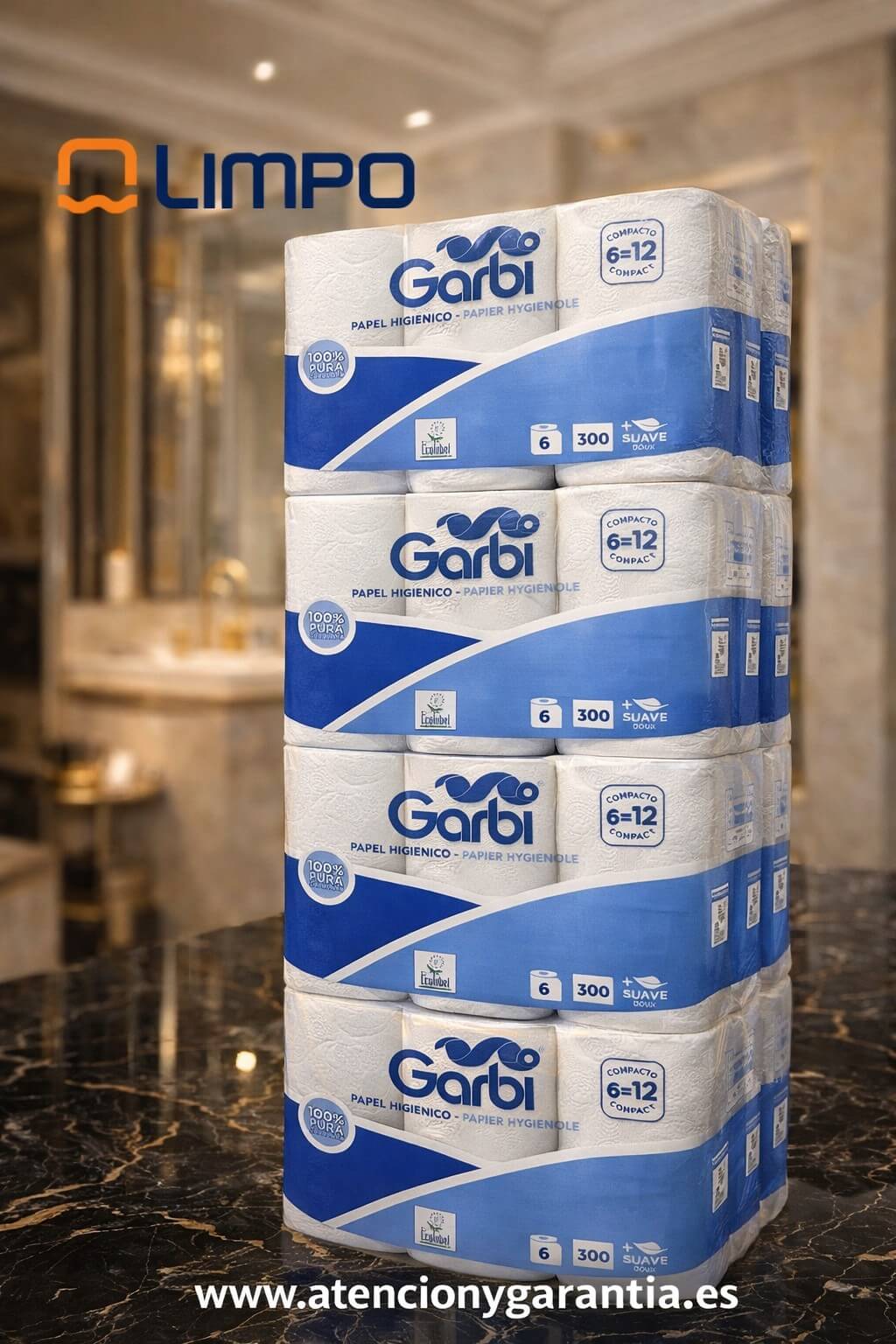 Papel Higiénico Garbi Compacto – Fardo 48 Rollos (8 packs x 6)