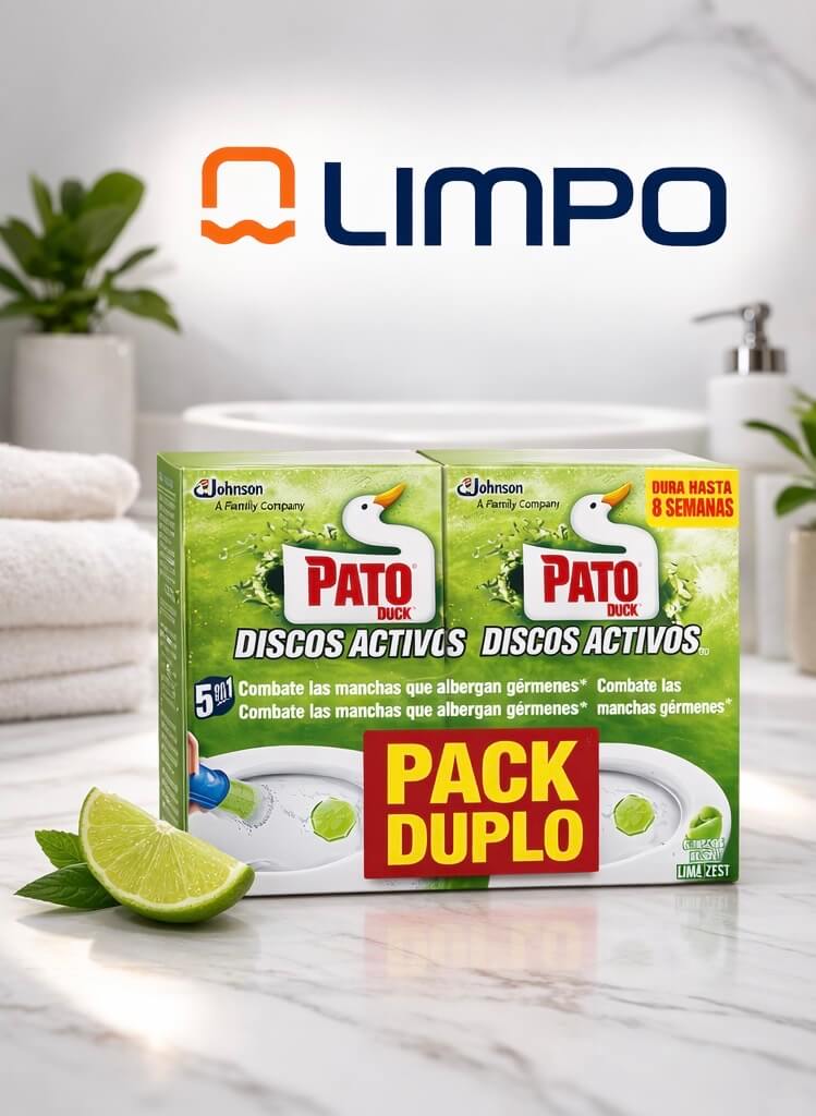 Mantén tu baño limpio y con un aroma fresco durante semanas con Pato Discos Activos para WC fragancia Lima Fresca. Su innovador sistema de discos de gel adhesivo se fija fácilmente en el interior del inodoro y actúa en cada descarga, proporcionando limpieza continua y un agradable perfume cítrico.