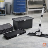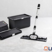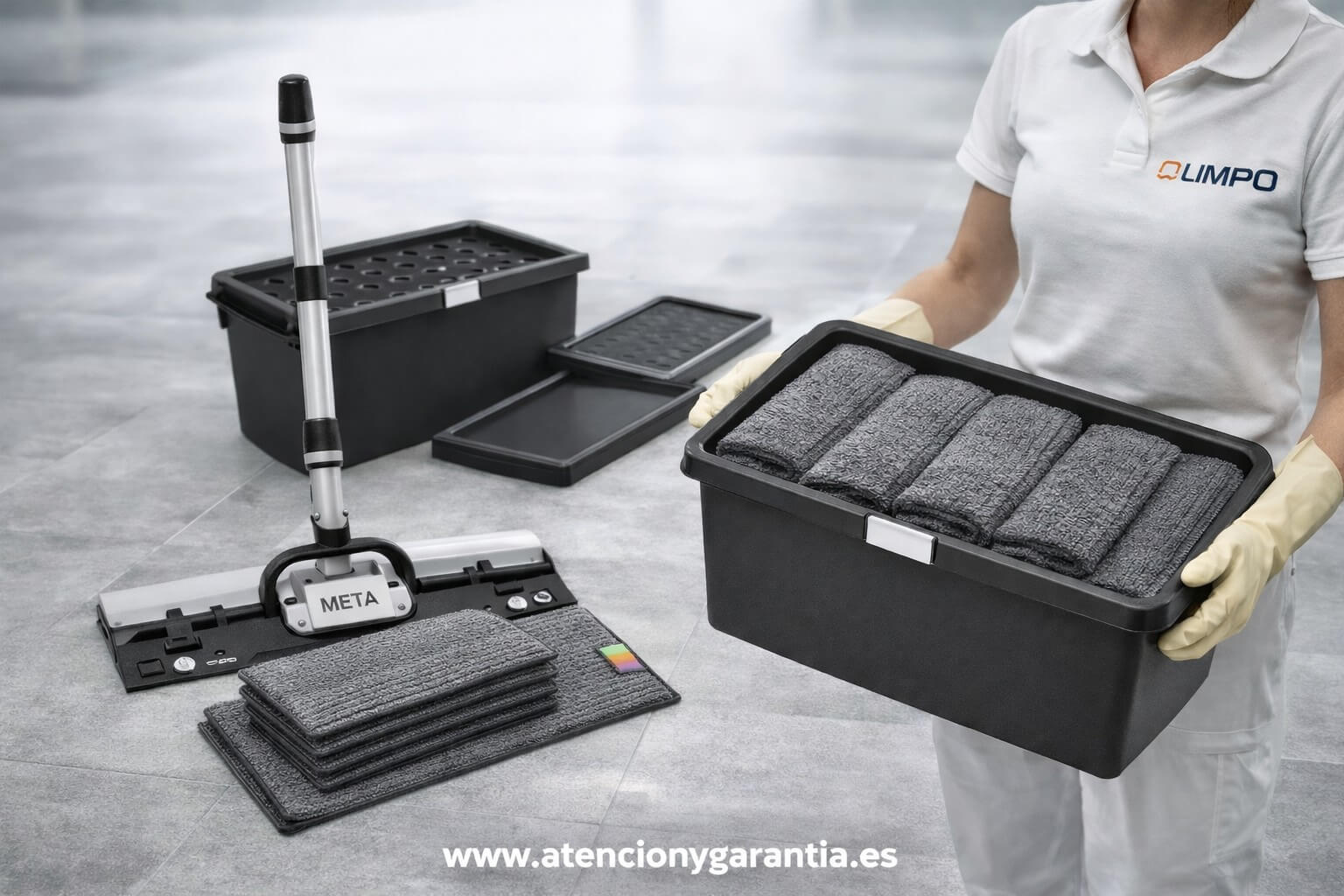 Este sistema permite trabajar de forma más rápida, higiénica y ergonómica, evitando el uso de cubos tradicionales durante la limpieza.