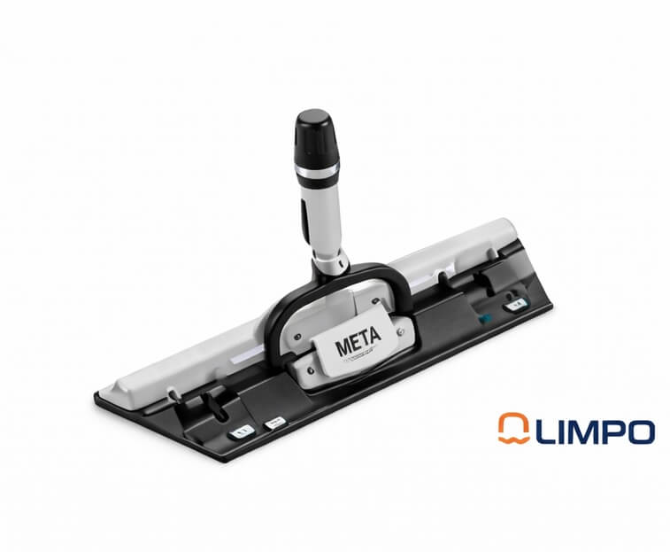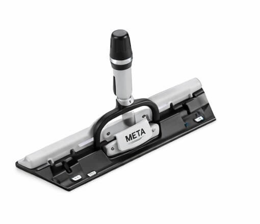 Su estructura ligera y resistente permite trabajar durante largas jornadas reduciendo el esfuerzo del operario. El sistema de fijación asegura una perfecta sujeción de las mopas META, garantizando un contacto uniforme con el suelo.