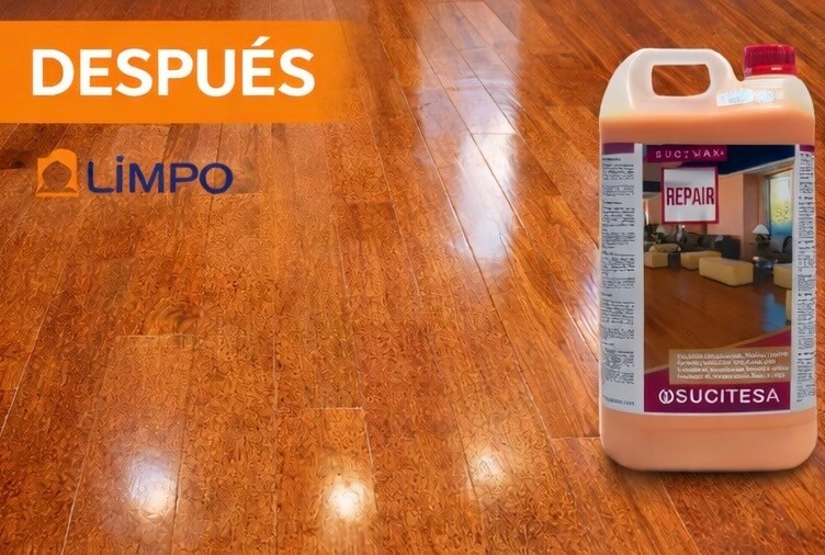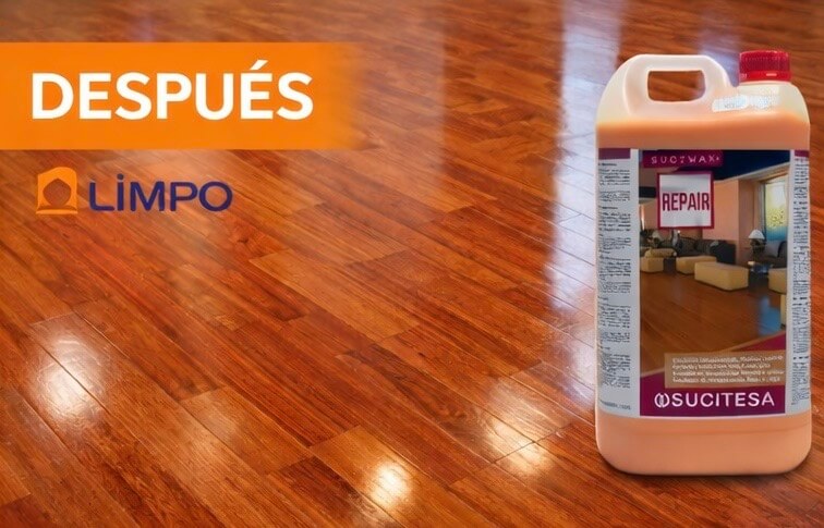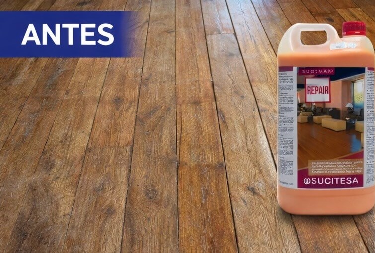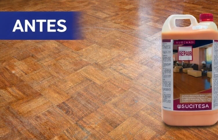 SUCIWAX REPAIR es una emulsión profesional de recuperación diseñada para restaurar y revitalizar suelos de madera y corcho, devolviéndoles su aspecto natural y su brillo original.